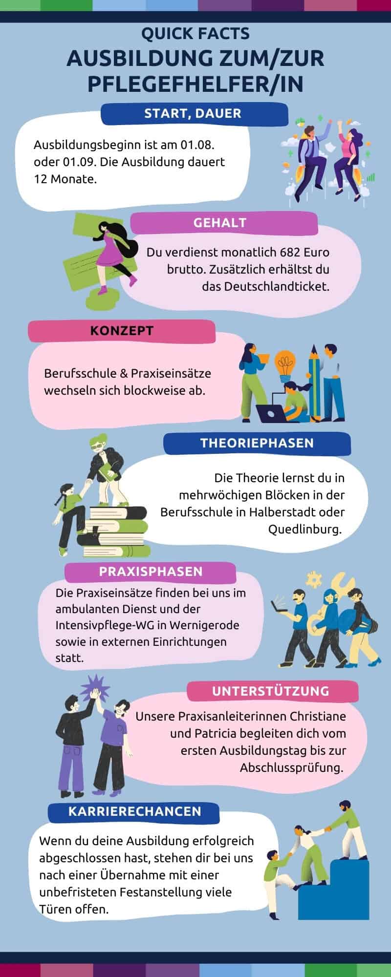 Was dich also erwartet? Eine Ausbildung, die nah an echten Menschen ist, die Vielfalt und Abwechslung bietet und dir vor allem zeigt, wie wertvoll dein Beitrag ist. Und wenn du dran bleibst, stehen dir danach bei uns viele Türen offen: ob in Form von Spezialisierungen oder in einer Leitungsposition.